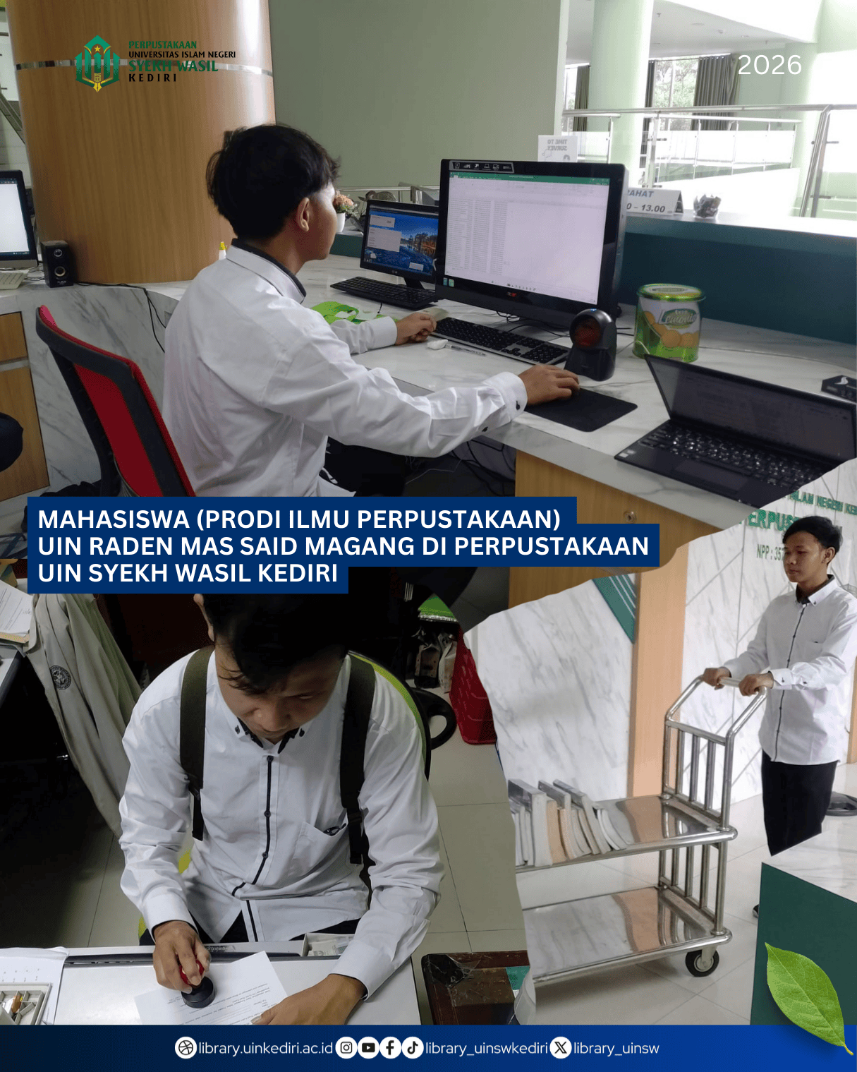 Perpustakaan – Perpustakaan Universitas Islam Negeri (UIN) Syekh Wasil Kediri menerima seorang mahasiswa magang bernama Wahyu Angga Alamsyah dari Program Studi Ilmu Perpustakaan dan Informasi Is