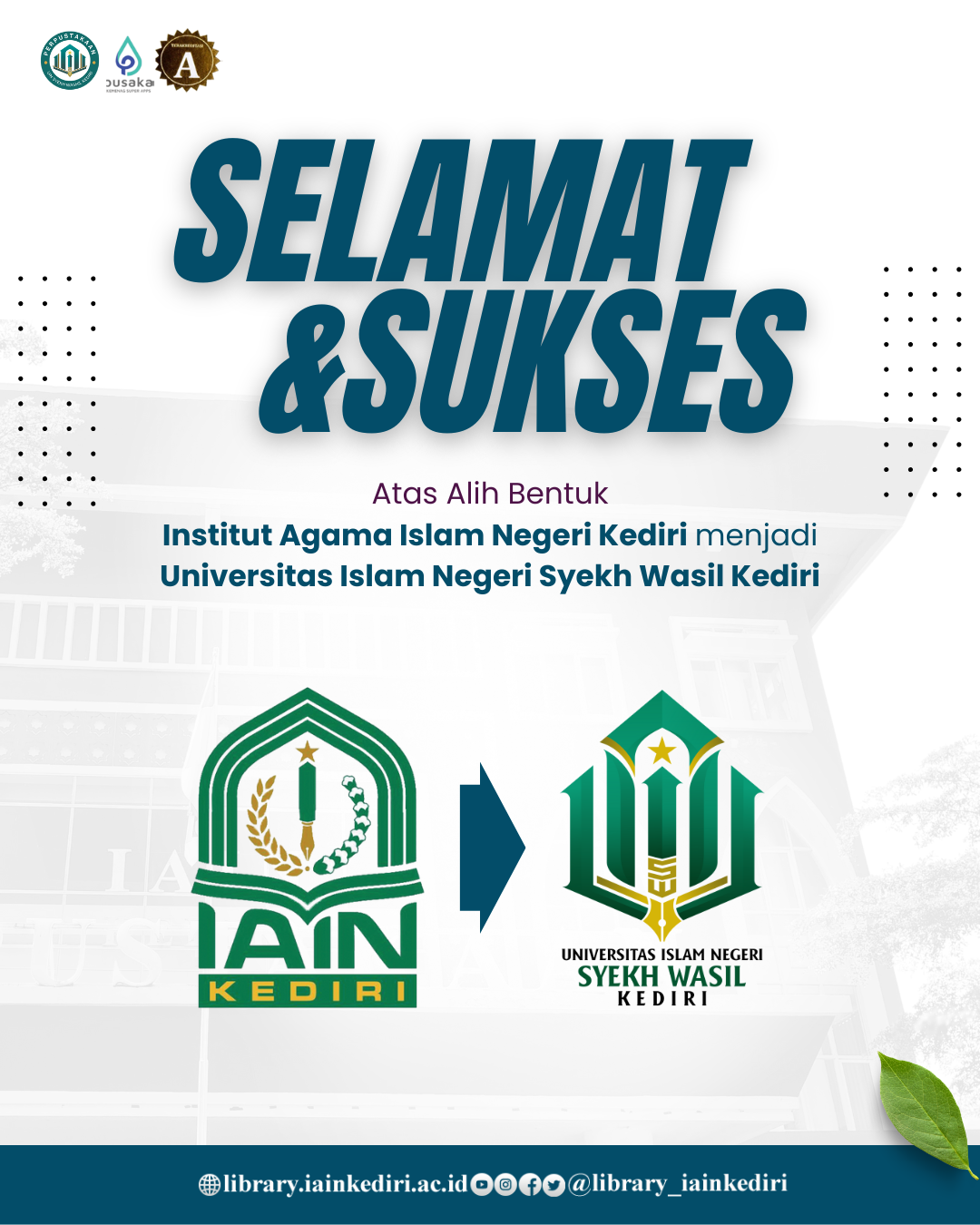 Perpustakaan UINSW Kediri - Hari ini toga dilempar ke udara, pertanda bahwa lembaran baru kehidupan sedang dimulai. Selamat kepada seluruh wisudawan dan wisudawati Gelombang II, III, dan IV UIN Syekh