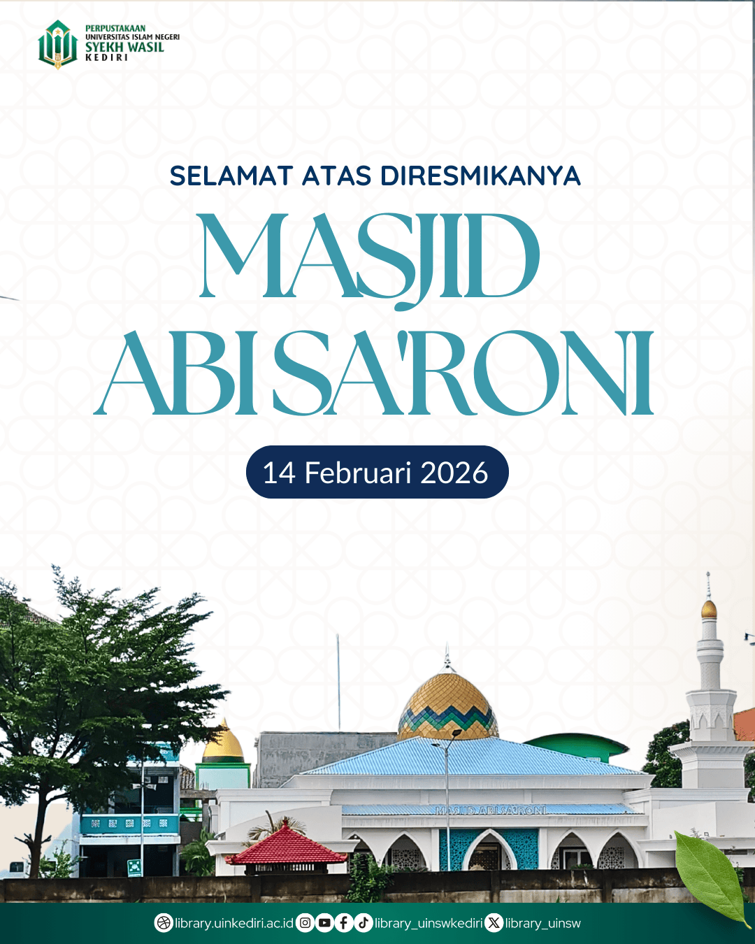 Selamat atas diresmikannya Masjid Abisaroni pada 14 Februari 2026! Peresmian ini merupakan momen bersejarah yang penuh berkah, menandai lahirnya sebuah rumah ibadah baru yang dirancang dengan arsitekt