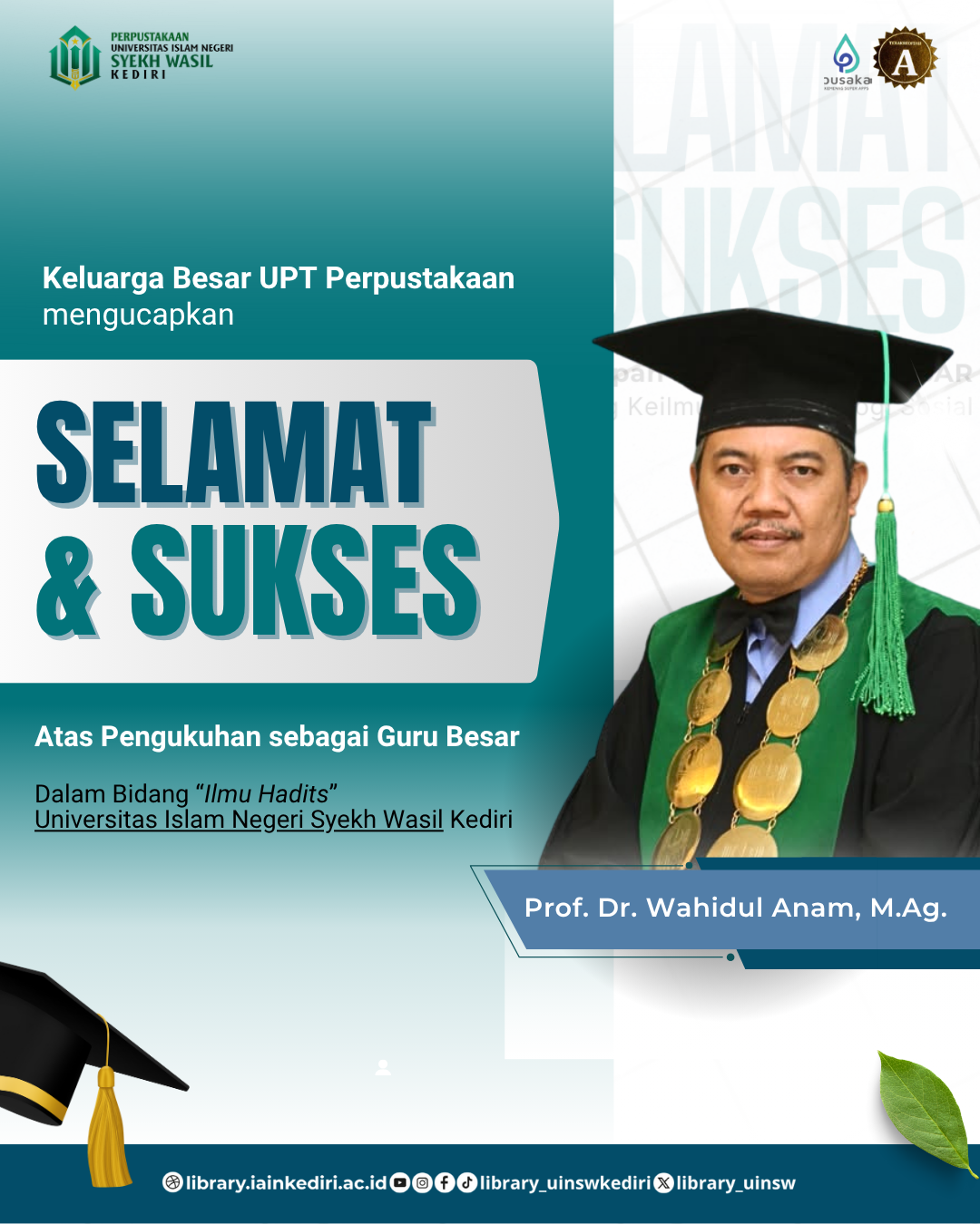Dengan penuh rasa bangga dan syukur, kami segenap sivitas UPT Perpustakaan IAIN Kediri mengucapkan selamat atas dilantiknya Prof. Dr. Wahidul Anam, M.Ag. sebagai Rektor UIN Syekh Wasil Kediri. Pelanti